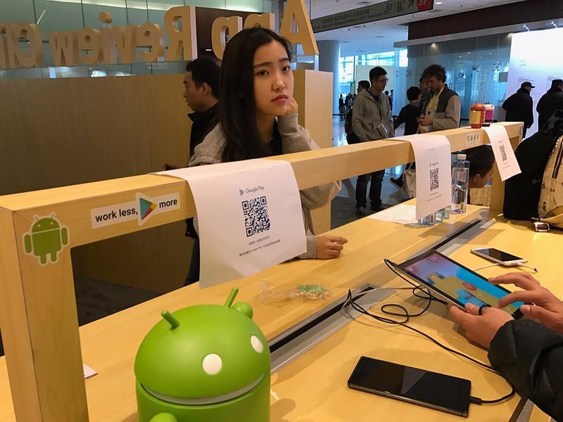 比如会场的一个区域,可以直接与 Google Play 工作人员单独对话,比如有一位开发者便在此询问如何解决自己应用在登陆 Google Play 时遇到的问题。
