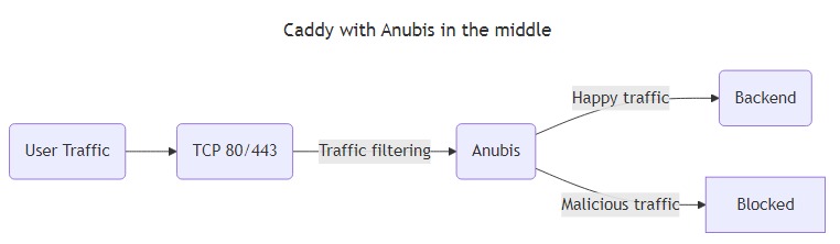 在大多数情况下,您应该不需要这样做,或许可以使用 Cloudflare 来保护指定的来源。但是,如果您不能或不愿使用 Cloudflare,Anubis 就能满足您的需求。