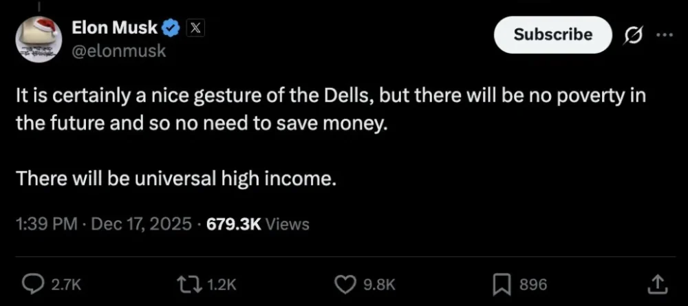 所谓“无需储蓄”、“慈善将消失”的论调,暴露了马斯克与现实的彻底脱节。