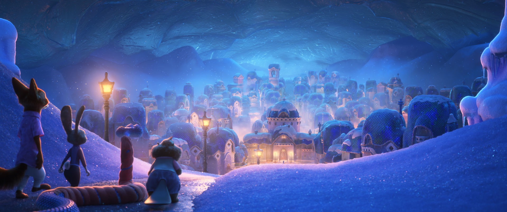 在《海洋奇缘2》制作期间,我们与迪士尼研究|工作室合作,在Hyperion系统中开发了新一代路径引导系统,该系统同时支持体积和曲面(不同于我们之前仅支持曲面的路径引导系统); 该系统基于卓越的前沿技术——开放路径引导库(OpenPGL)[Herholz and Dittebrandt 2022]构建。《疯狂动物城2》是首个大规模部署新一代路径引导系统的电影项目,约12%的画面渲染采用了该系统。我们在SIGGRAPH 2025的课程中详细阐述了该系统的技术细节[Reichardt et al. 2025] 课程中展示了该系统的诸多技术细节,但要使路径引导真正成为可扩展的渲染功能,我们投入了远超课程内容的研发工作。这项工作需要Hyperion团队的少数开发人员与迪士尼研究|工作室的众多同仁深度协作,以至于过去几年间,迪士尼研究|工作室已将Hyperion作为其核心内部研究渲染平台之一,其研究人员更直接参与了我们的代码库开发。作为学术渲染背景出身者,我认为这正是加入迪士尼公司体系后团队能实现的最酷成就之一。新一代路径引导系统在《疯狂动物城2》中展现出巨大价值:影片多处原本预计渲染难度极高的场景,因路径引导技术实现了效率与工作流的飞跃性提升,最终得以轻松完成!