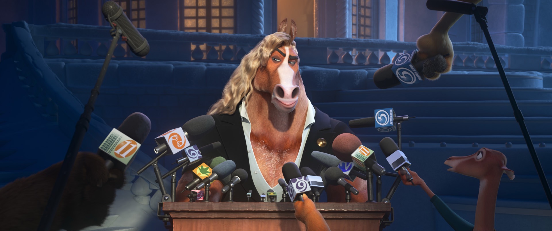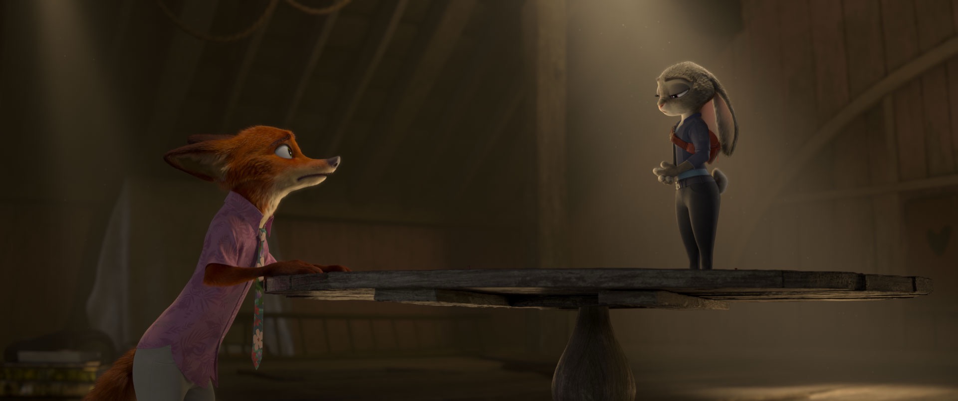 我们在《疯狂动物城》(2016)中取得的最大渲染技术突破之一,是开发了江氏毛发着色模型。该模型现已成为毛发着色的行业事实标准,并被大多数主流渲染器所采用。在《疯狂动物城2》制作中,我们保留了原版[Chiang et al. 2016]的毛发着色模型,但将大量精力投入到改进毛发光线与几何体相交算法的精度和性能上。改进光线-曲线相交算法的过程,实际上需要与视觉开发艺术家进行大量紧密迭代。这听起来或许令人意外——毕竟我们并未修改毛发着色器,但毛发最终效果源于毛发纤维间的多次散射交互。光线-曲线相交精度产生的微小能量差异,在多次散射过程中会累积放大,最终导致整体视觉效果产生显著差异。在原创电影中,若角色毛发外观因渲染器底层变更而在前期制作阶段出现细微偏移,通常可容忍这些视觉差异并随影片风格演变进行调整。但在续作中,既定角色的目标外观已明确,我们必须严格遵循既定标准,因此需要格外谨慎。