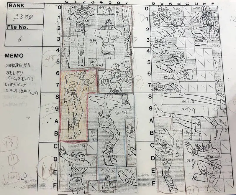 但观察卡米角色图层(0x9000)可发现布局显然非手工制作,似乎采用了自上而下、左至右的分配系统。卡普空大约在1992年开始使用工具构建《街头霸王2》的新GFX ROM,是否使用x68000工作站仍未可知。