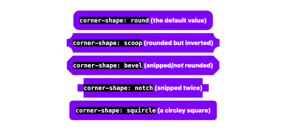 如今圆角设计已不再令人雀跃。事实上,锐角设计正强势回归,与”方圆体”(方形圆角或圆形方角,任君选择)同样风靡——这正是CSS的corner-shape属性能实现的效果